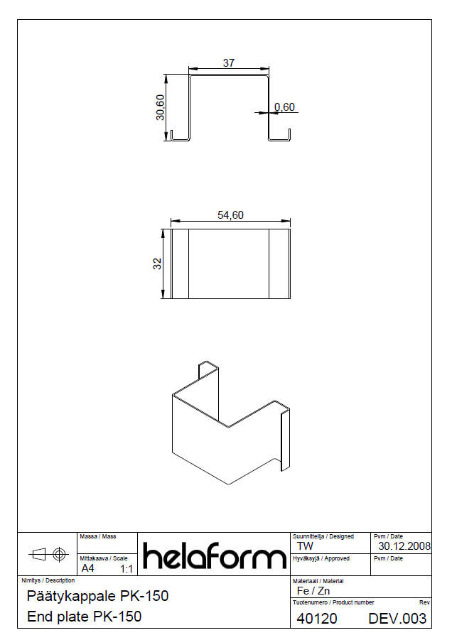 Sliding door end clip for 150 series sliding door systems. The end clip prevents lateral movement of the track and covers all fittings inside the track.