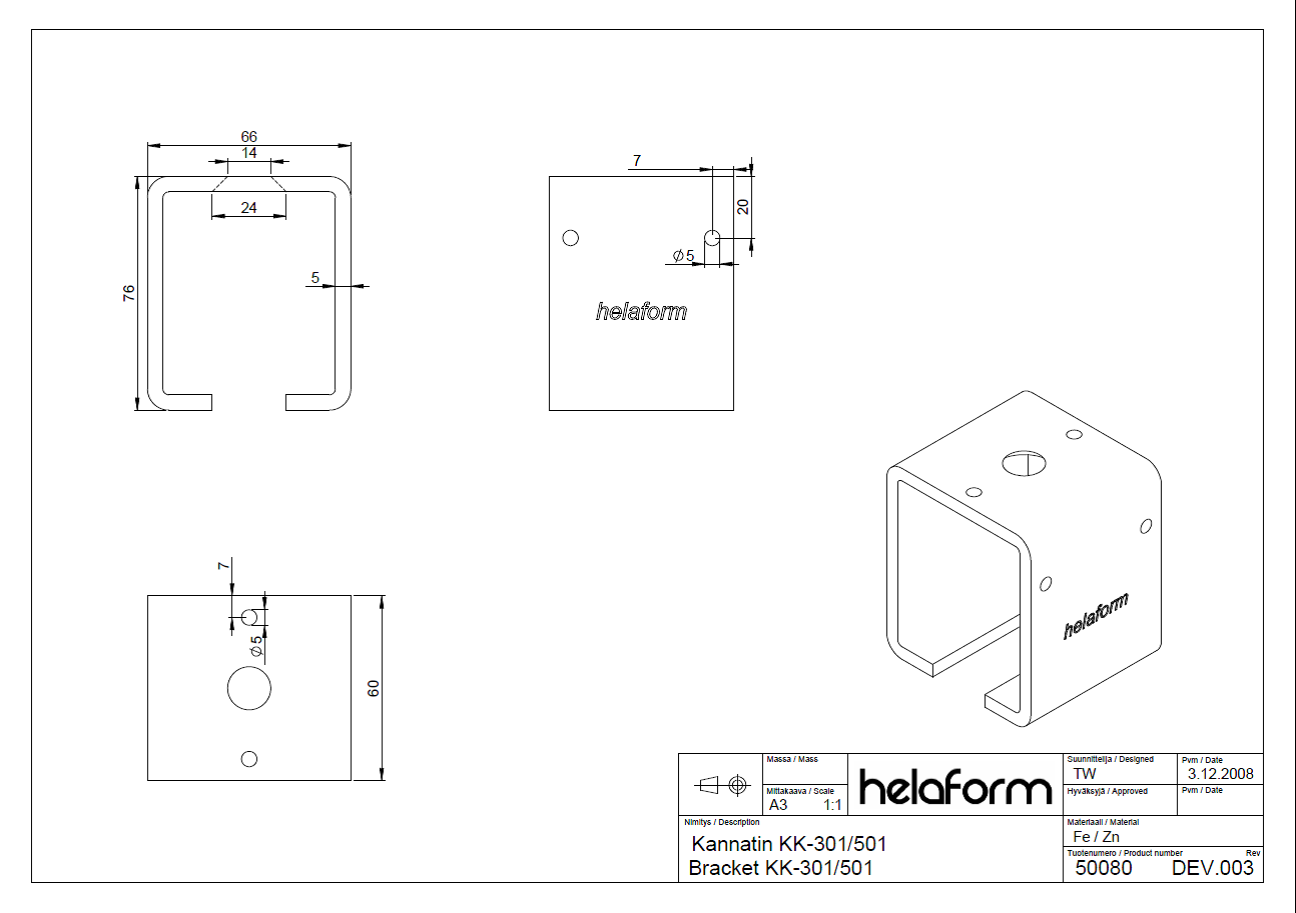 Sliding door soffit bracket for 300/500 series sliding door systems.