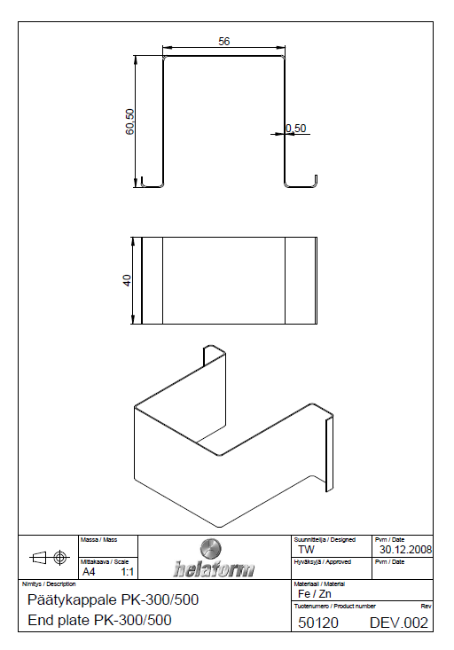 Sliding door end clip for 300/500 series sliding door systems. The end clip prevents lateral movement of the track and covers all fittings inside the track.
