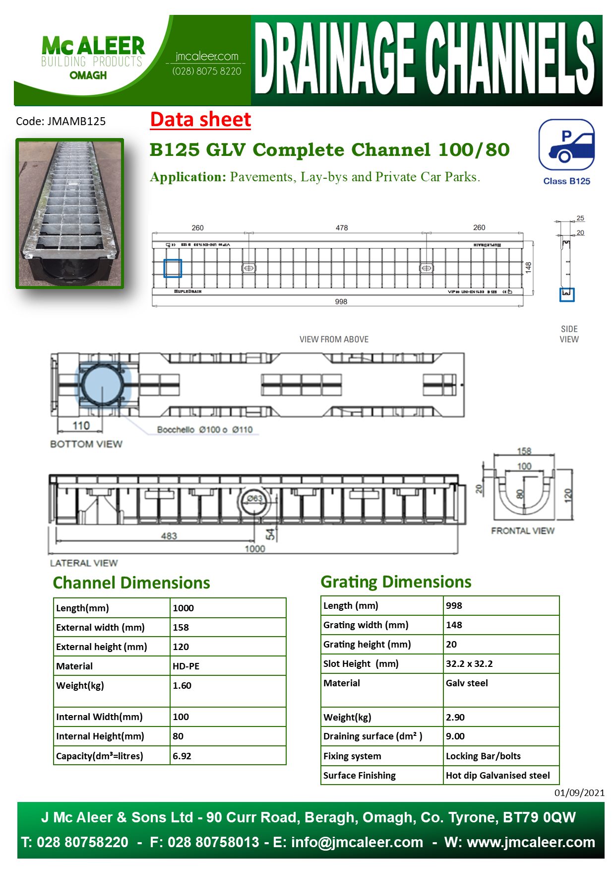 100 80 B125 GLV channel JMAMB125 Declaration of Performance