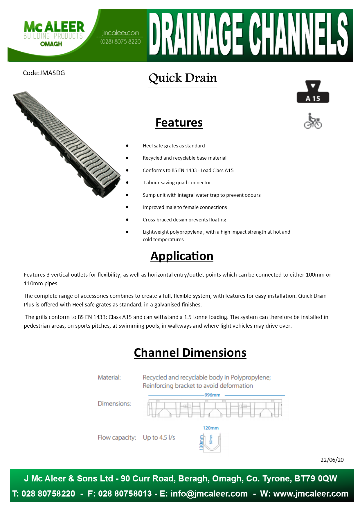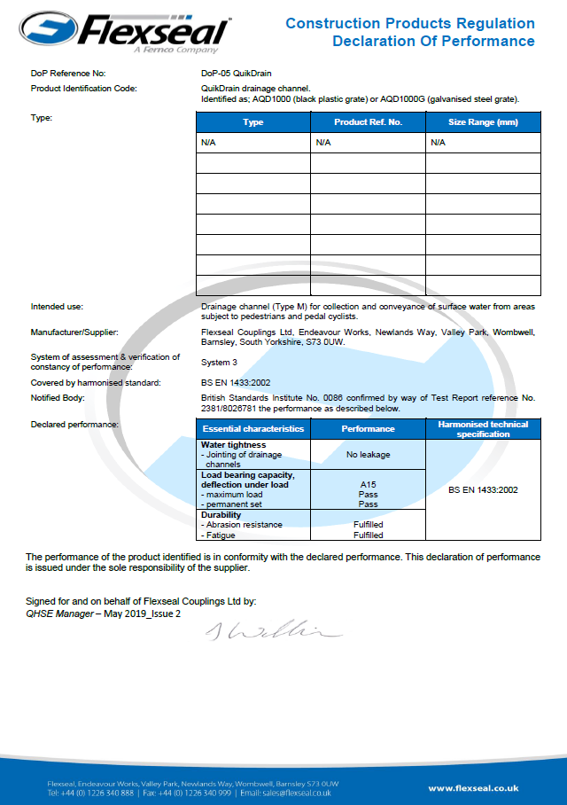 QuickDrainSPECSHEET Declaration of Performance